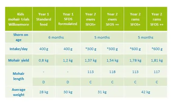 - an INCREASE in mohair yield from 0,8 kg over a 6-month period to 1,8 kg over a 5-month period;