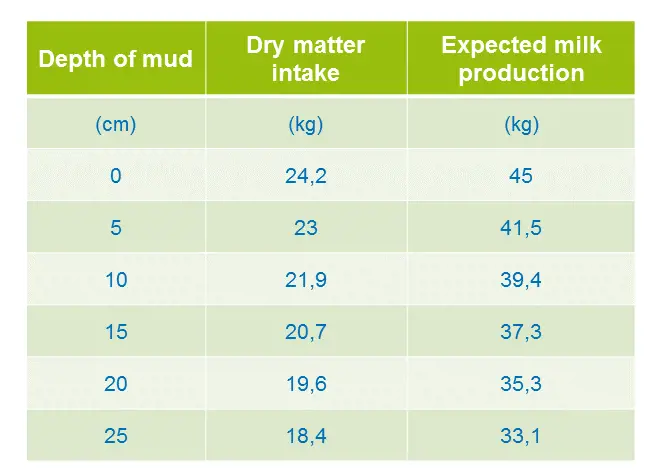 Table 1 The Impact of Mud on Feed Intake and Milk Production