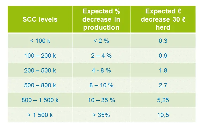 Table 2 Effect of SCC on Milk Production (Source: Logix)