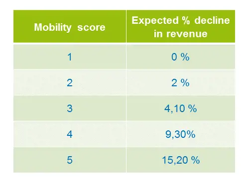 Table 3: Expected Decline in Revenue due to Poor Mobility. (Source Peter Robinson, UC)