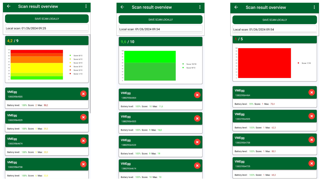The De Heus technical team carried out a series of tests on egg grading systems across South Africa to assist in monitoring the impact force on eggs. The tests were done as follows: 10 electronic eggs were used to measure every single transition in the egg transportation system. All transition points were measured individually so that the force at every transition could be determined. Where necessary, the transfer points were adjusted (fine-tuned) with the help of a grading system specialist.
