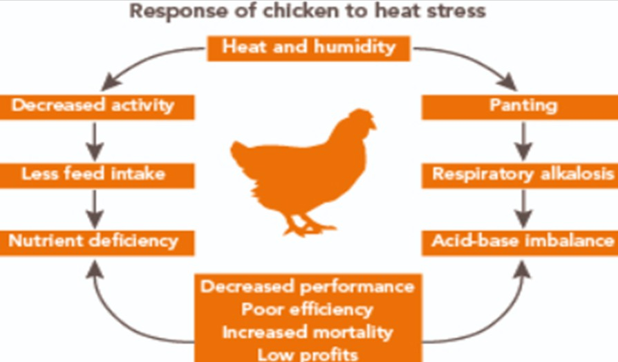 The main environmental stressors that are temperature-related are heat stress and the amount of space available. The apparent signs of a bird experiencing heat stress include panting, decreased activity, poor feed intake, and an increase in mortality in situations when laying hens are exposed to severe heat (see figure 3). This will lead to substandard production, which will impact the weight and quality of the eggs. It has been suggested that poultry species apply vitamin C to reduce the effects of heat stress.