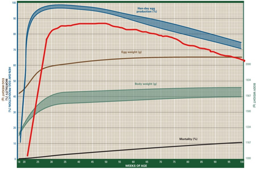 Photo-stimulating a non-uniform flock will not result in a rapid or synchronised onset of lay. The flock will often not have a defined production-peak but rather an extended point of lay, and a ‘flattened’ and lower production-peak will be seen.