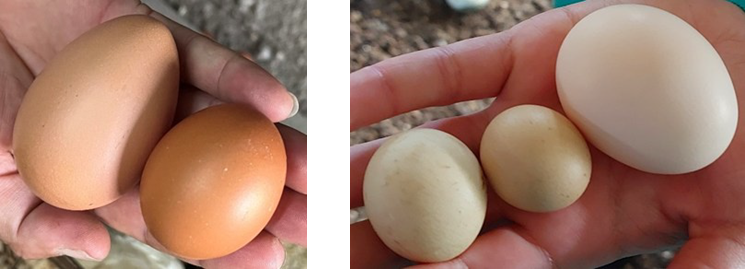 Figure 6: Double yolk from 22-week-old pullet (left) & “fairy” eggs (right)