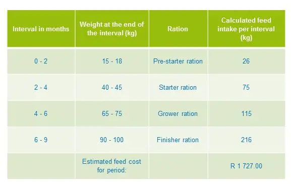 - Feathers: 6 months' income on cleaned feathers: R200,00 and then slaughtered at 9 months: R400,00