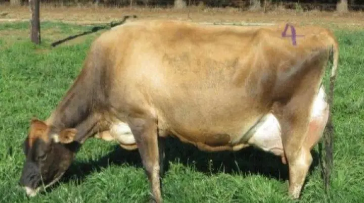 The pick of the older cows was a 6 – 8-year-old Harvest owned and bred at Nkifa Jerseys (Lyn and Denny Blomeyer, Underberg). This cow showed tremendous dairy strength with a high and wide udder. This cow was in fact the pick of the week, not only winning her class, but also being named Senior Champion, Grand Champion and Best Udder. Congratulations to Lyn and Denny Blomeyer on producing a cow of this calibre.